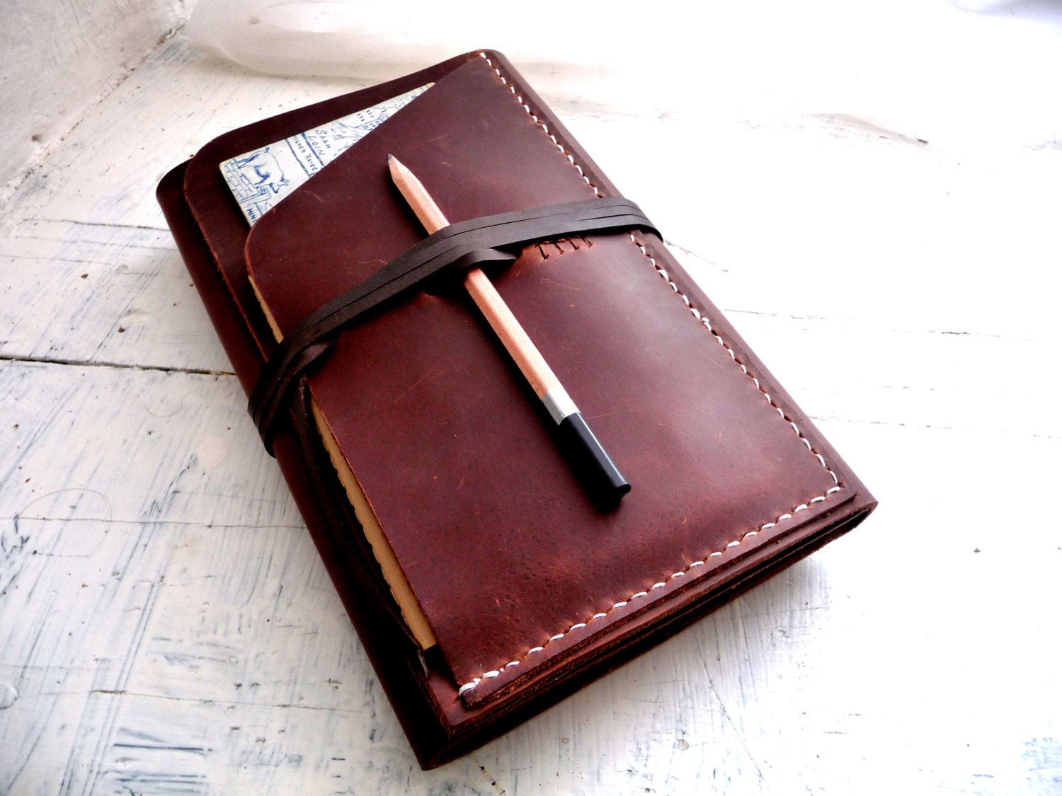 This leather cover is built to last and last and will only improve in time developing it's own unique story on it's travels with you. It would also make a perfect travel gift.