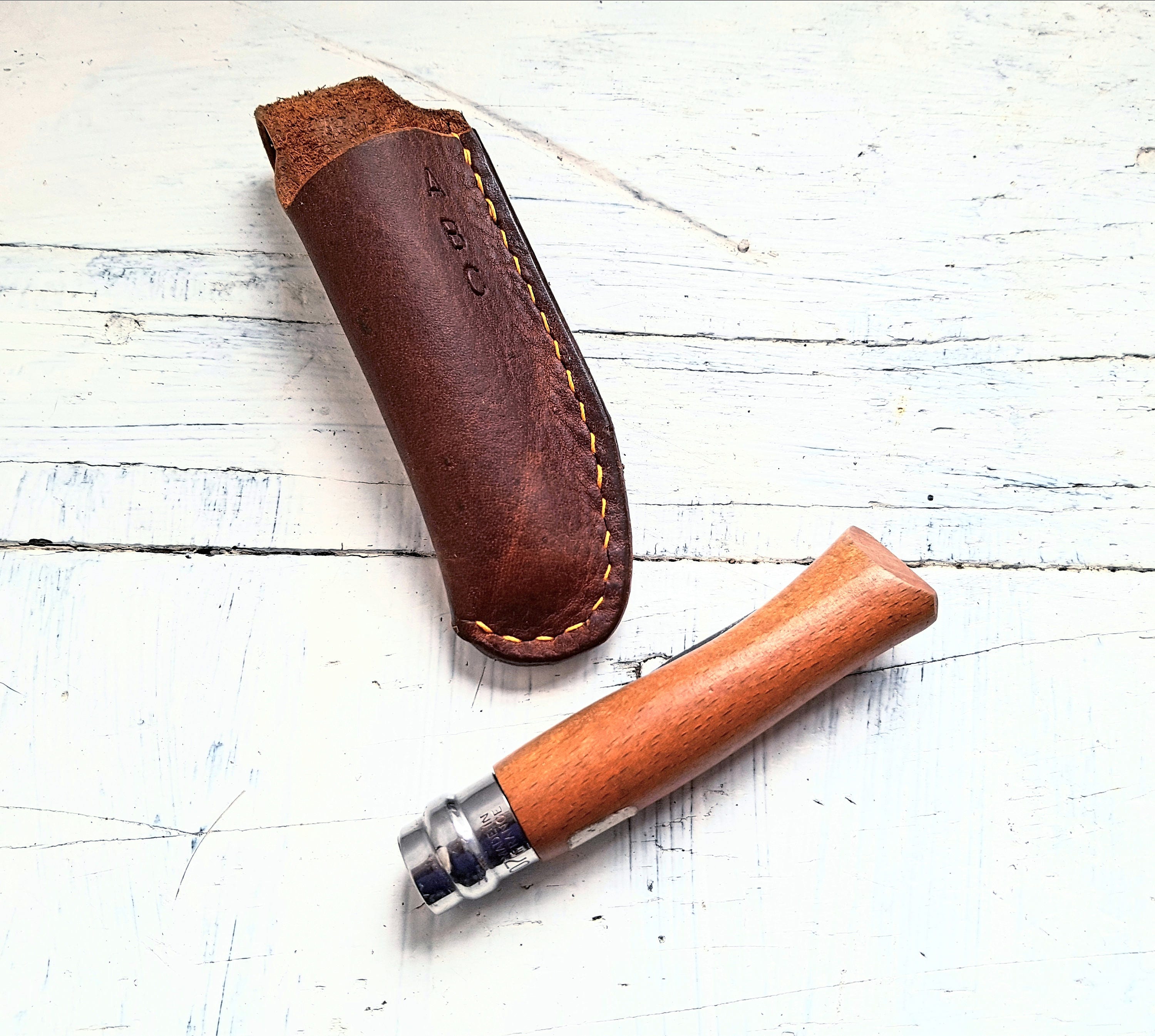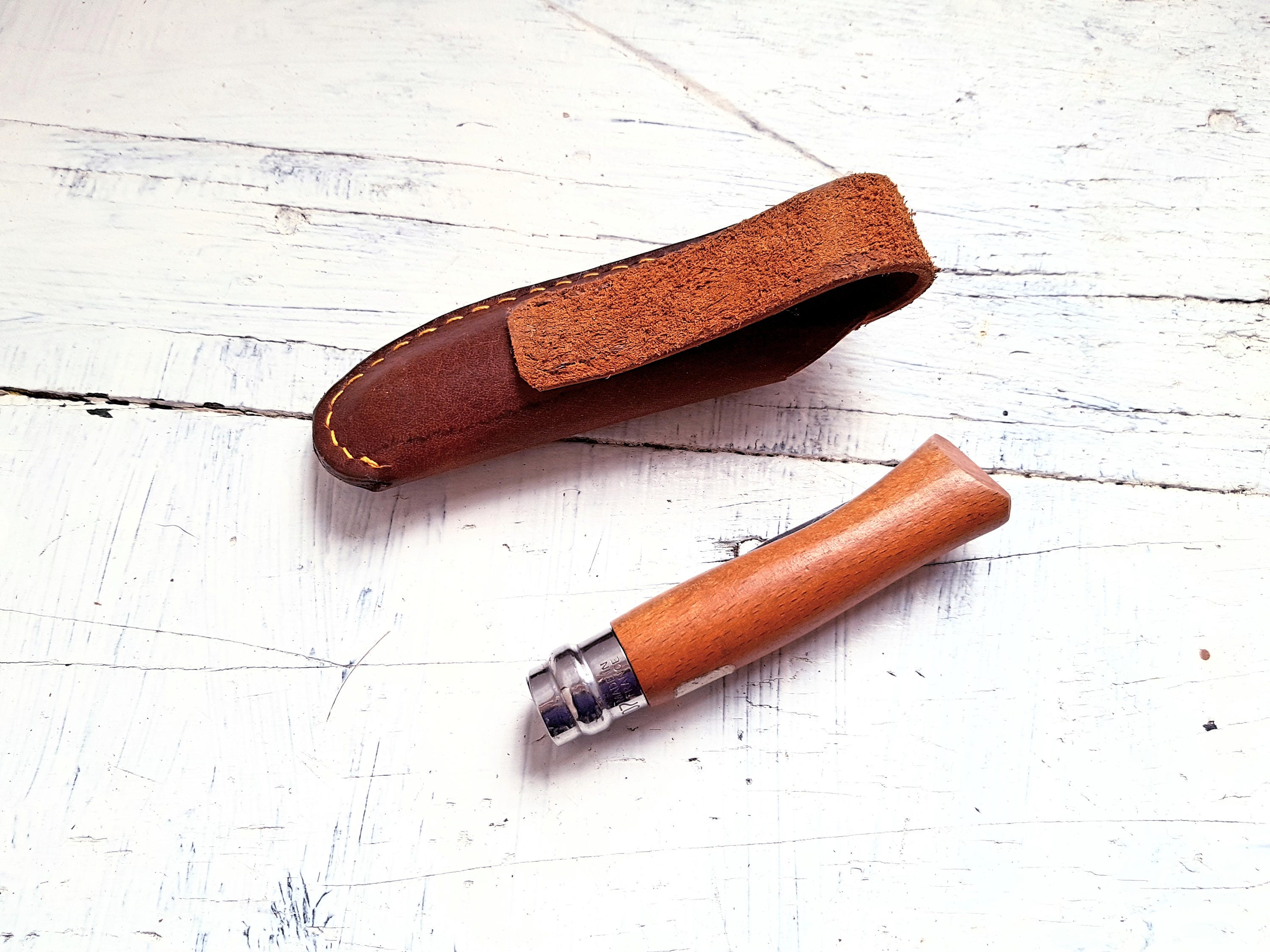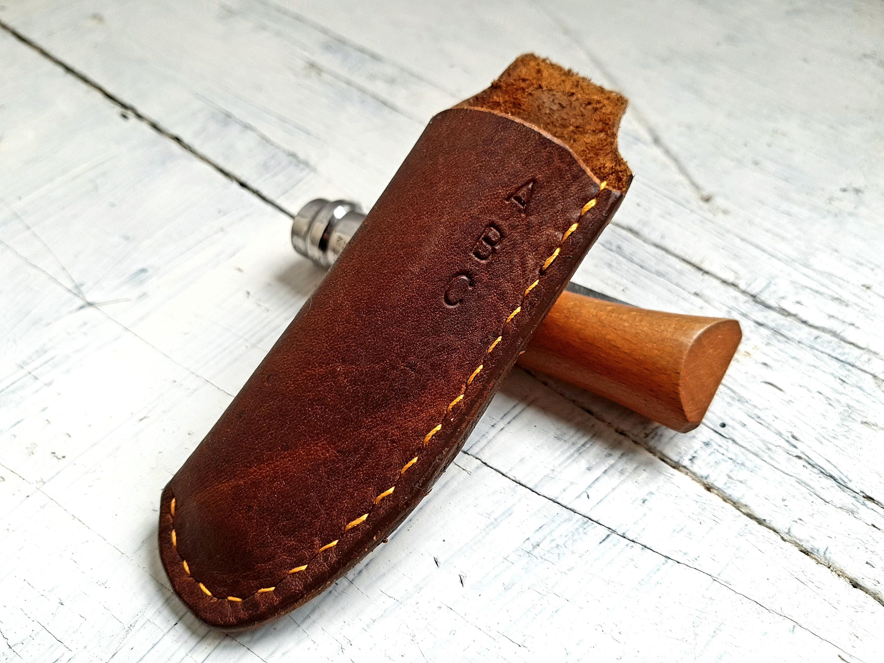 Handmade leather sheath for your Opinel knife 08.